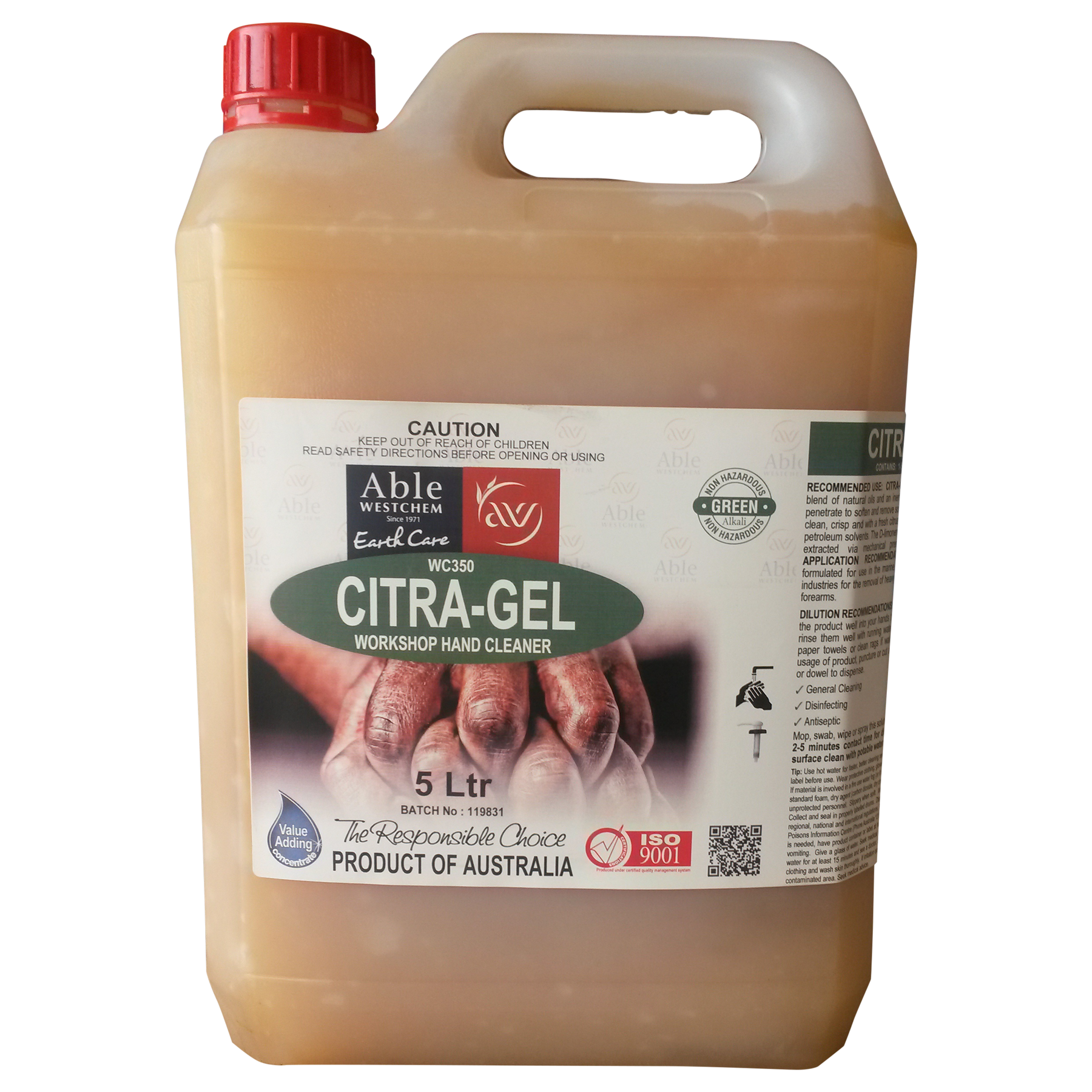 CITRA-GEL has been formulated for use in the marine, mining, industrial and engineering industries for the removal of heavy grease and grimes from hands and forearms.