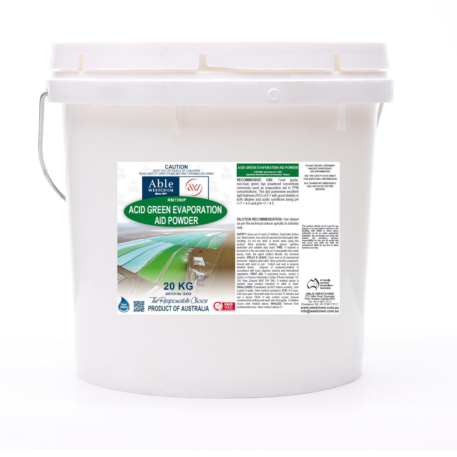 ACID GREEN EVAPORATION AID POWDER is a high-strength dye concentrate. It is used as a eco substitute to methylene blue and is used in brine ponds and industrial water bodies at low ppm dose rates. The product increases solar absorption within the brine mass, which assists evaporation under suitable operating conditions. Typical starting dose is around 4 ppm, with optimisation based on brine composition, pond depth, colour intensity and site conditions. Actual evaporation improvement will vary, however trial results under selected conditions have shown increases of up to 20%. Other features and applications may include: