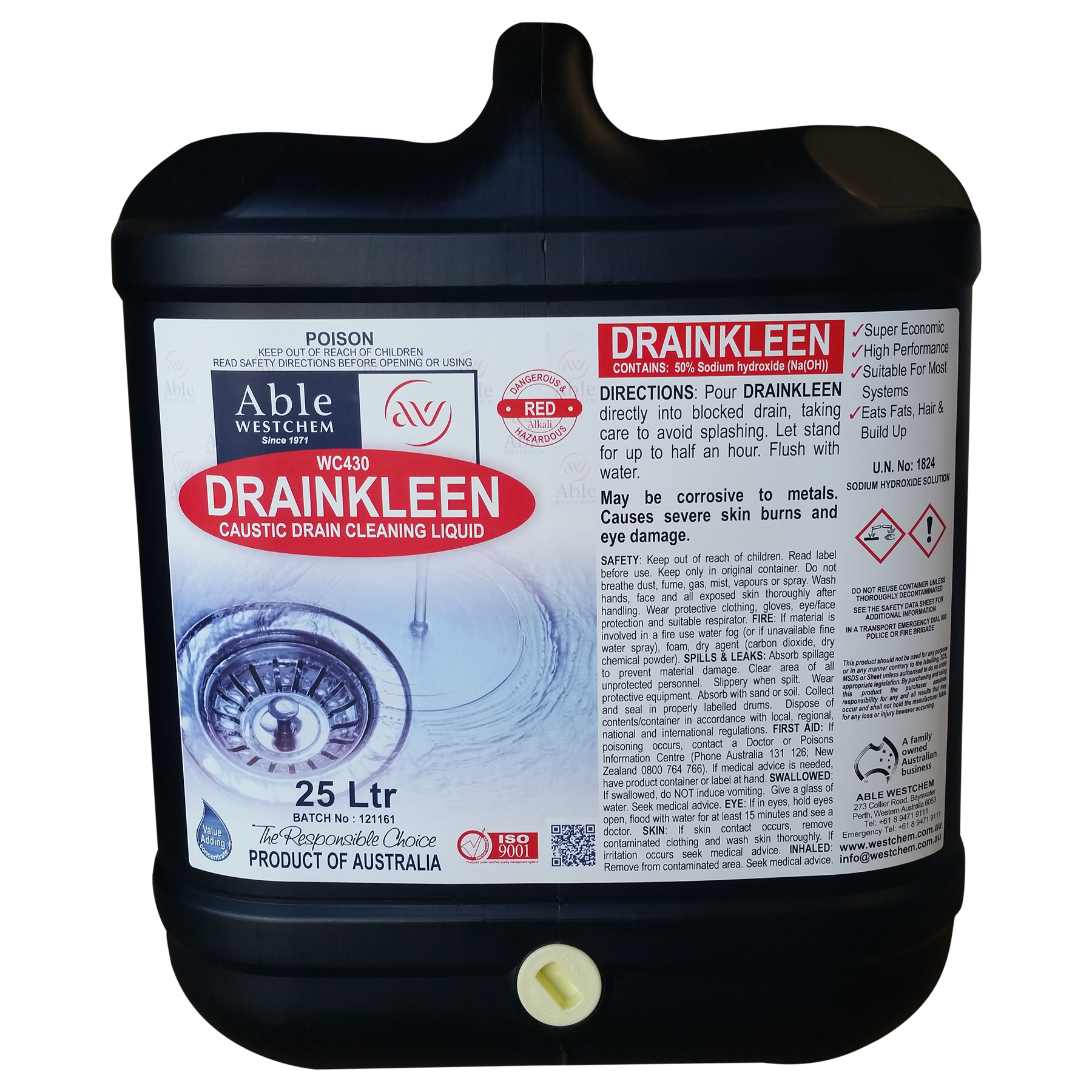 DRAINKLEEN is a caustic liquid cleaner designed for clearing drains blocked by grease, body fats and scum.
